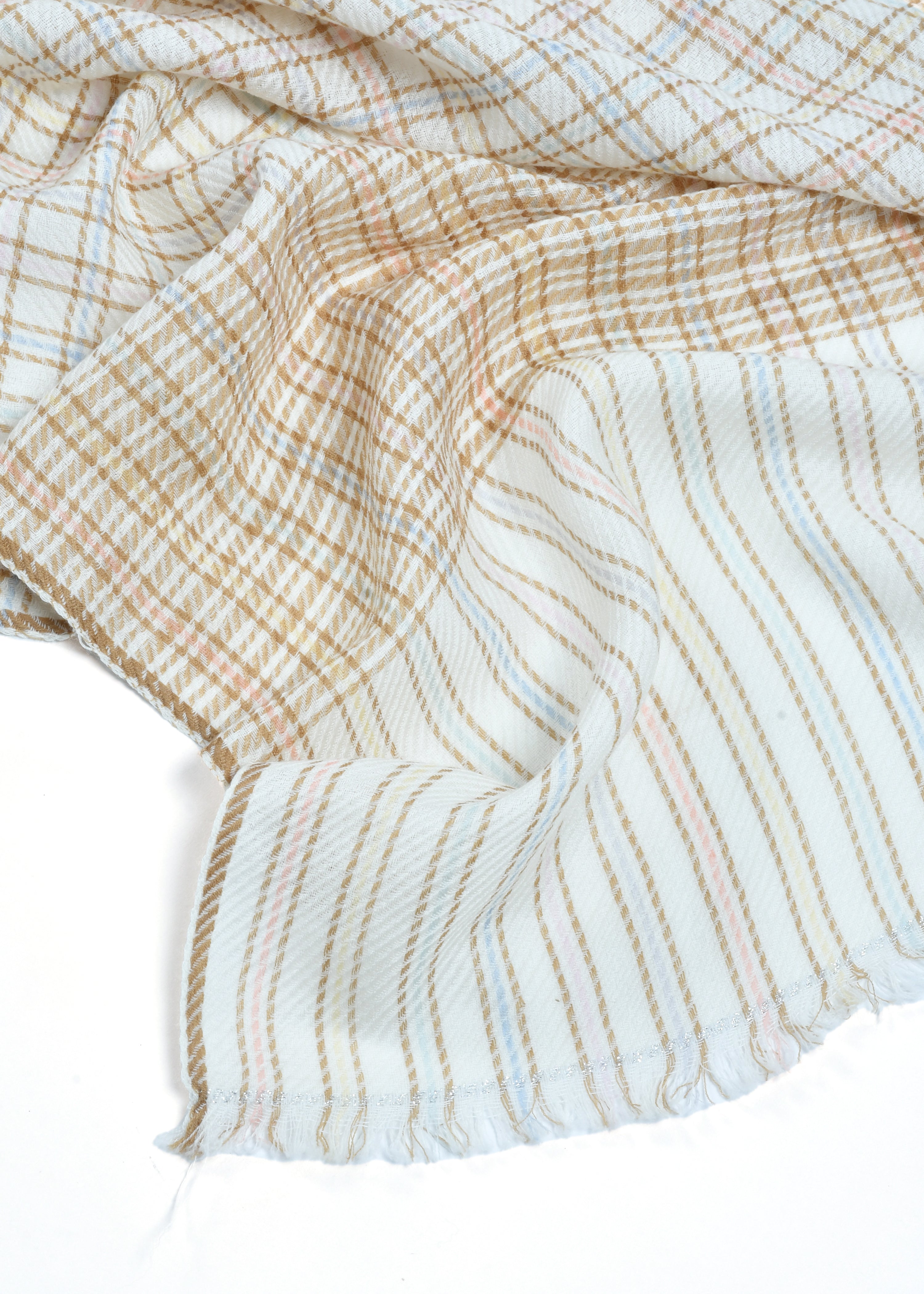 Versatile men's wrap crafted in sophisticated pin stripes, on ivory and beige combo pure Merino.